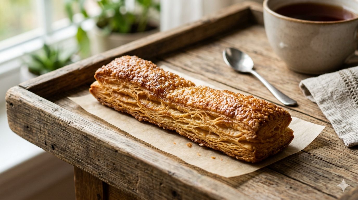 忙しい日々に寄り添う、サクサクのキャラメル・スティックパイ。冷凍パイシートを使い、まるで焼き菓子店で買ったような仕上がりを目指します。