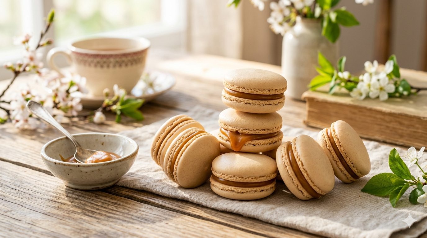 - Authentic caramel macarons with attention to the layers of accomplishment.