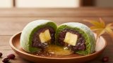 The stars shining in the night sky and the soft and gentle aroma of green tea melt together in this comforting daifuku. It is a visually beautiful Japanese sweet that is like a romantic night sky locked in.