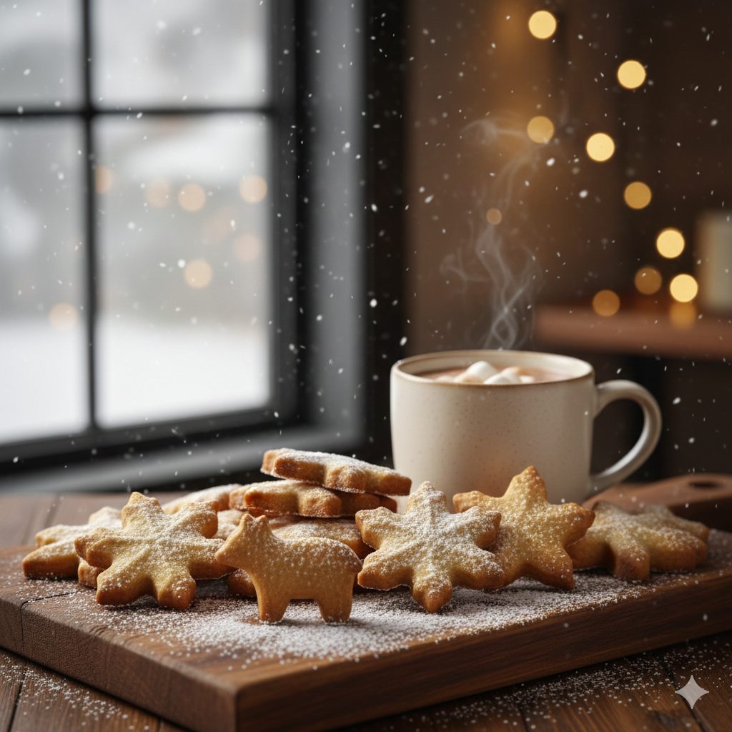 - [Finished with a snow-covered surface! Beautifully decorated]After removing the cookies from the heat, sprinkle powdered sugar softly over the cookies with a tea strainer. The cookies will look fantastic, as if snow has fallen on them. The “Snowy Forest Ginger Maple Cookies” are now ready to eat!
