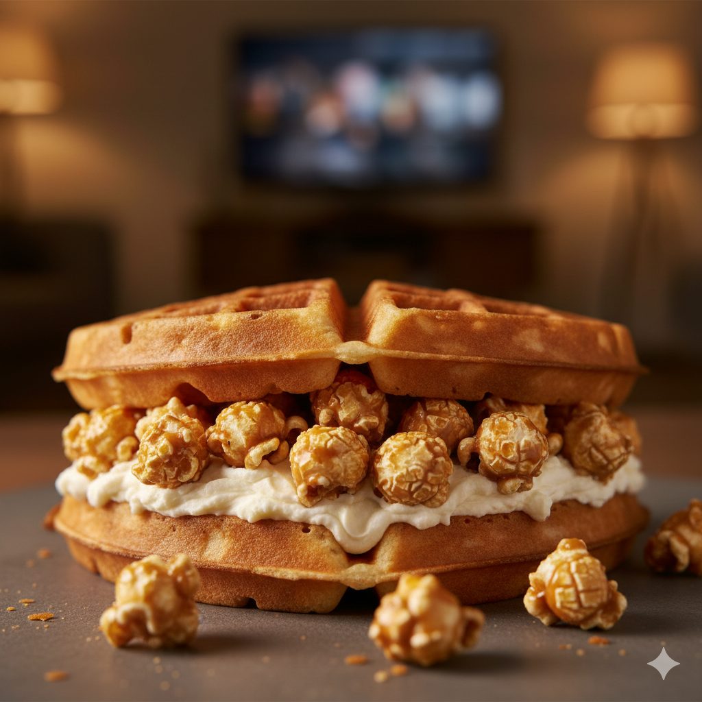 カリッ!じゅわ~!秘密のキャラメルポップワッフルサンド ~映画のお供に、とろける甘さの魔法~